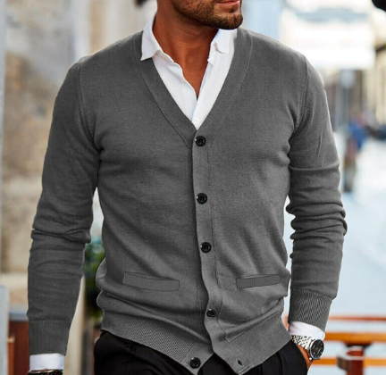 Erleben Sie Strickmode vom Feinsten mit diesem V-Ausschnitt-Cardigan aus 100 % Kevin-Wolle. Zeitloser Stil und unvergleichlicher Komfort zeichnen diesen Cardigan aus. Er eignet sich perfekt für Lagenlooks und verleiht jedem Outfit Eleganz. Seine weiche Textur und das klassische Design machen ihn zu einer vielseitigen Wahl für legere und formelle Anlässe.