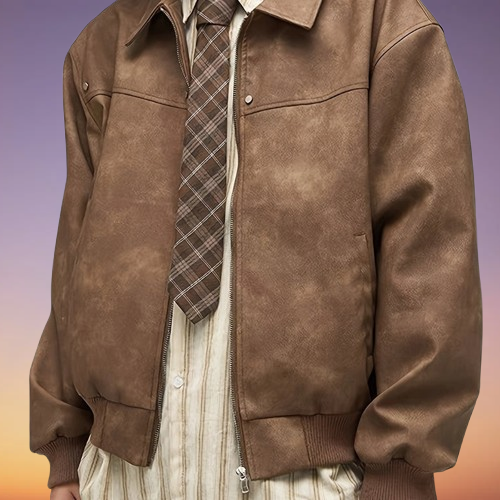 Verleihen Sie Ihrem Stil mit der Maximilian Vintage Brown PU Jacke das gewisse Etwas