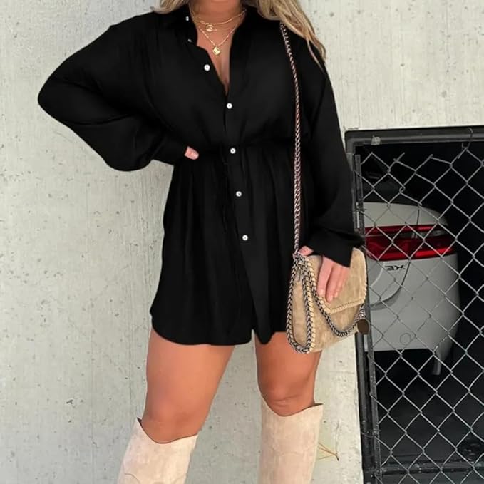 Das schwarze Mini Kleid mit Knopfreihe und Gürtel ist der Inbegriff von mühelosem Chic. Mit seinem zeitlosen Design und dem modischen Gürtel, der Ihre Taille perfekt betont, ist dieses Kleid ideal für entspannte Ausflüge sowie stilvolle Anlässe.