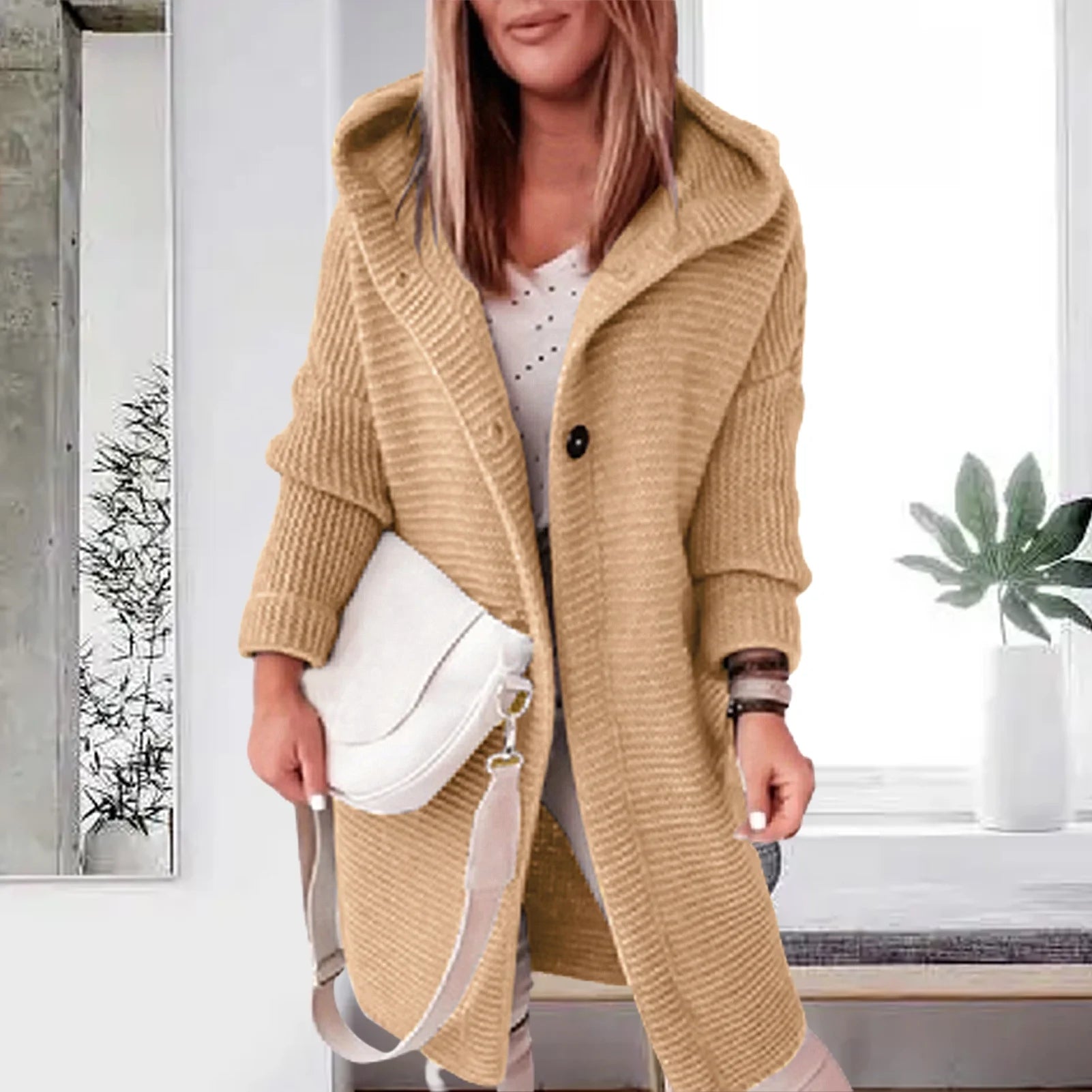• Design: Langer Cardigan mit Kapuze und Knopfverschluss