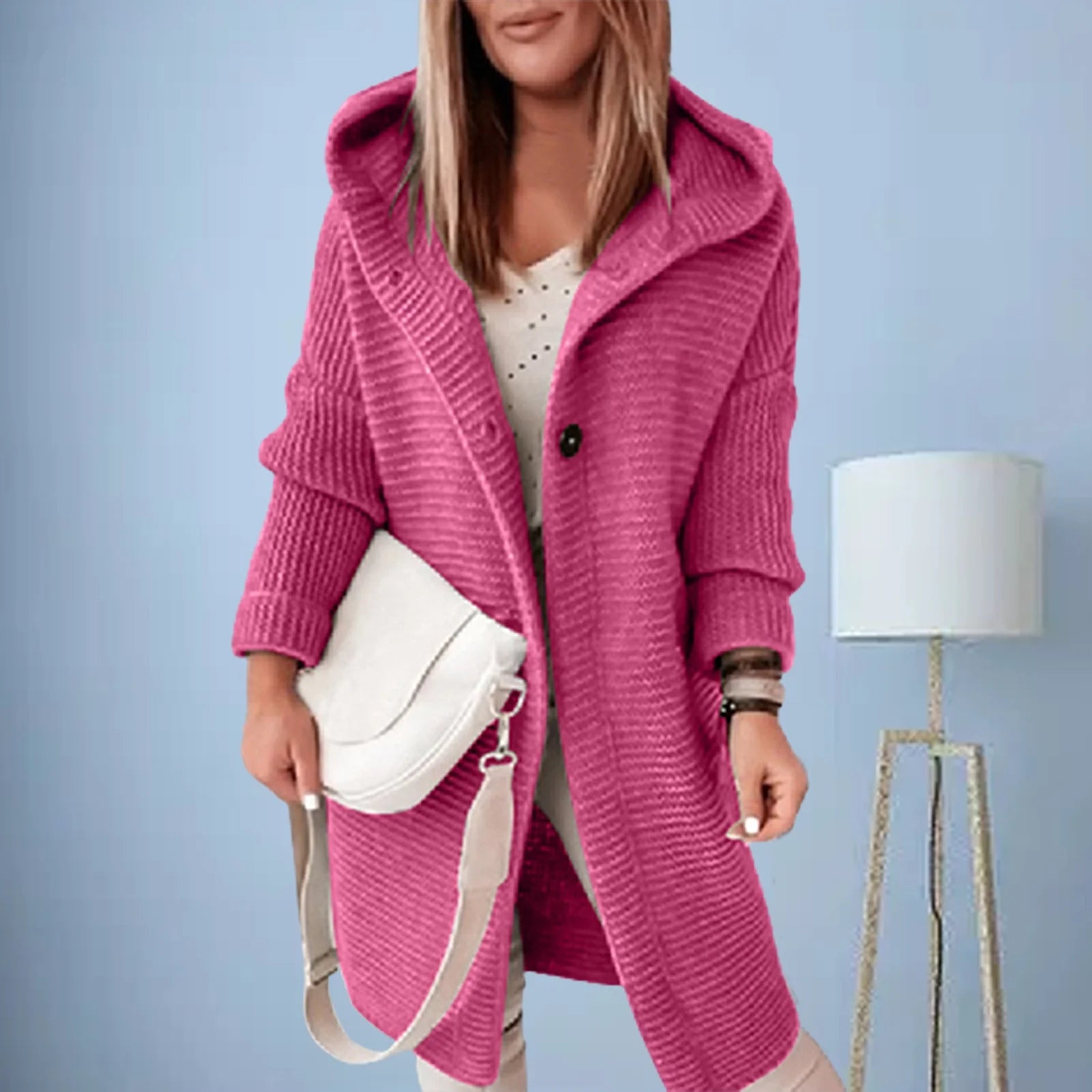 Christina | Lässige lange Strickjacke mit Knopfverschluss