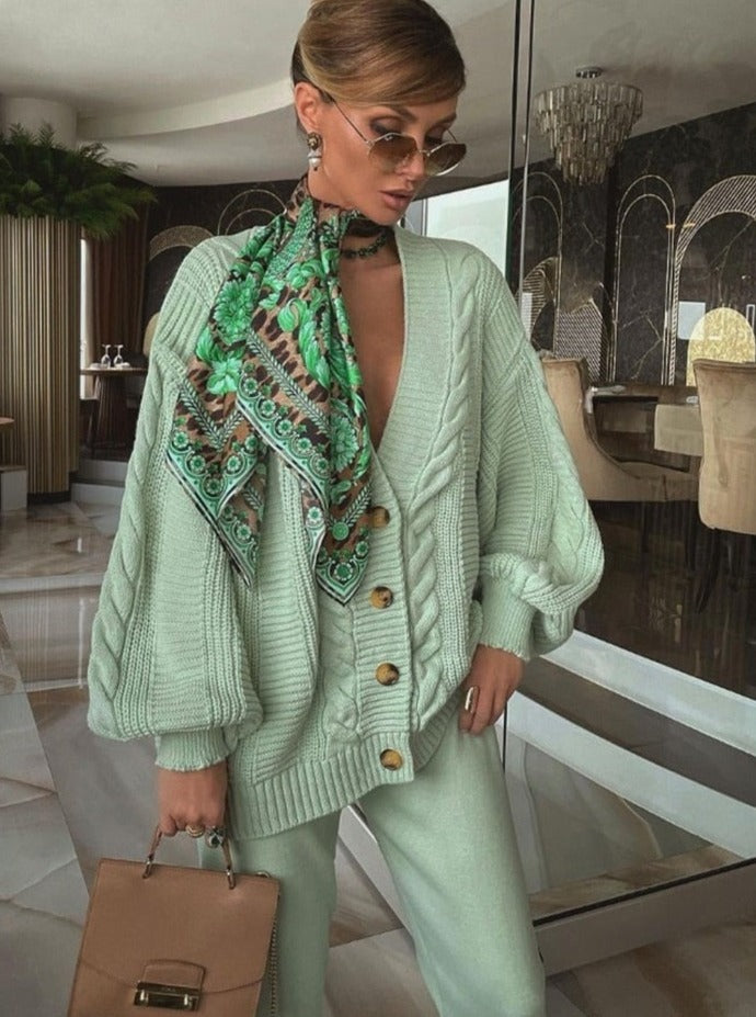 Erleben Sie die perfekte Kombination aus Komfort und Eleganz mit dem zweiteiligen Damen-Set Daniela. Dieses Set aus Cardigan und Hose wurde entworfen, um Ihren Look zu unterstreichen, ohne dabei auf Komfort zu verzichten. Gefertigt aus hochwertigen Materialien, bietet dieses Outfit ein luxuriöses Tragegefühl und einen zeitlosen Look, den Sie die ganze Saison über tragen können.
