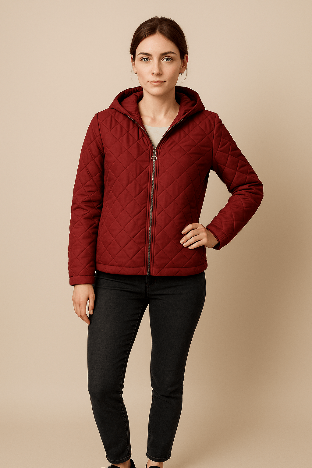 Hüllen Sie sich in den Komfort und die zeitlose Eleganz des Emilia-Mantels von Elegance-Urban. Diese wattierte Damenjacke besticht durch ihre lockere Passform und das stilvolle Rautensteppmuster und vereint lässige Eleganz mit dezenter Raffinesse. Das weiche, isolierende Material wärmt angenehm, ohne aufzutragen, während der elastische Saum und der sichere Frontreißverschluss sowohl Funktionalität als auch eine schmeichelhafte Silhouette garantieren.