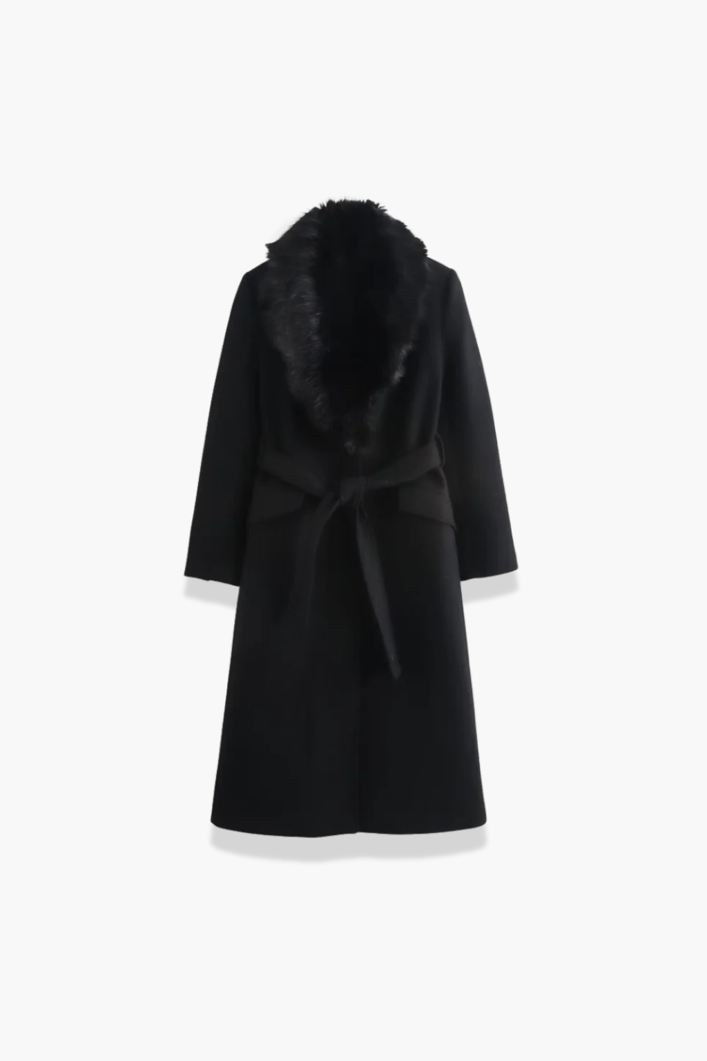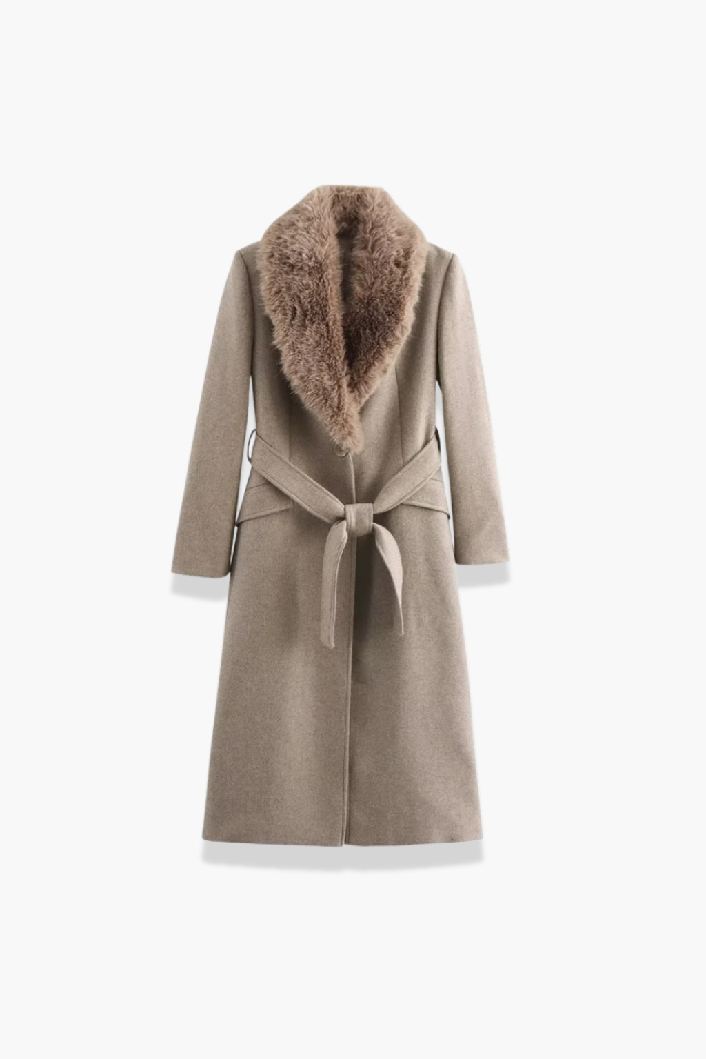 Dieser elegante Wintermantel ist die perfekte Kombination aus Stil und Funktionalität. Mit seinem schicken Revers und dem weichen Kunstpelzkragen wärmt er nicht nur, sondern betont auch mühelos Ihre Silhouette. Das Gürteldetail verleiht ihm eine raffinierte Note und eignet sich sowohl für legere als auch für formelle Anlässe.