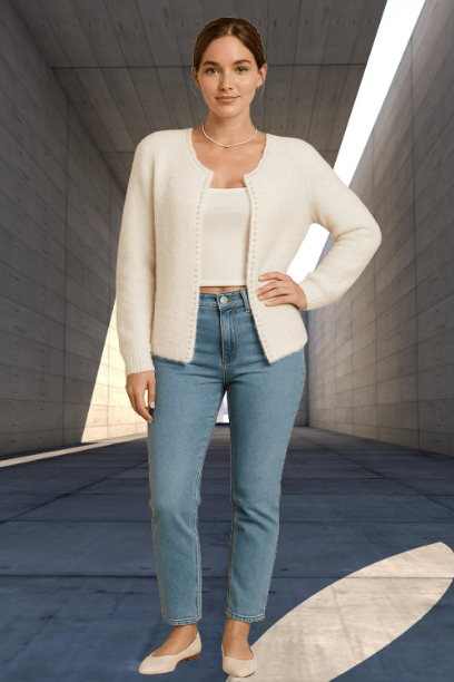 Die Karolin-Strickjacke verleiht Ihrem Alltagslook eine elegante Note. Gefertigt aus einem weichen Strickgemisch, besticht sie durch elegante Perlenverzierungen an Ausschnitt und Vorderseite, die ihr eine dezente, feminine Note verleihen. Dank des lockeren Schnitts und der fließenden Silhouette lässt sie sich perfekt über Tops, Blusen oder Kleidern tragen.