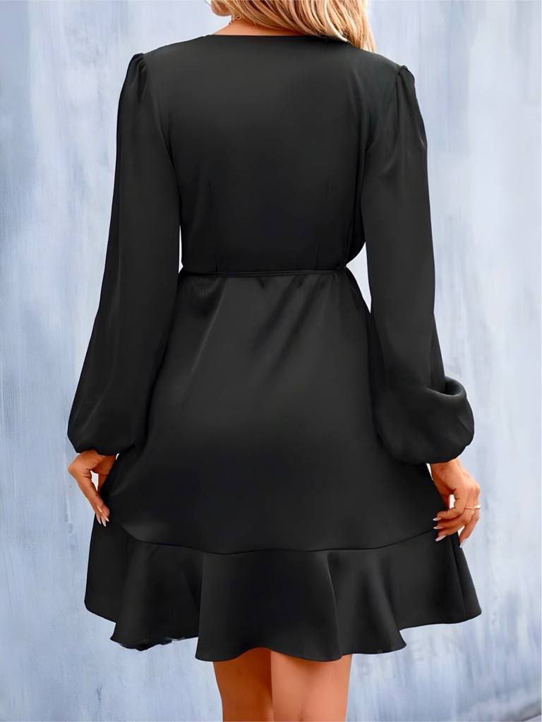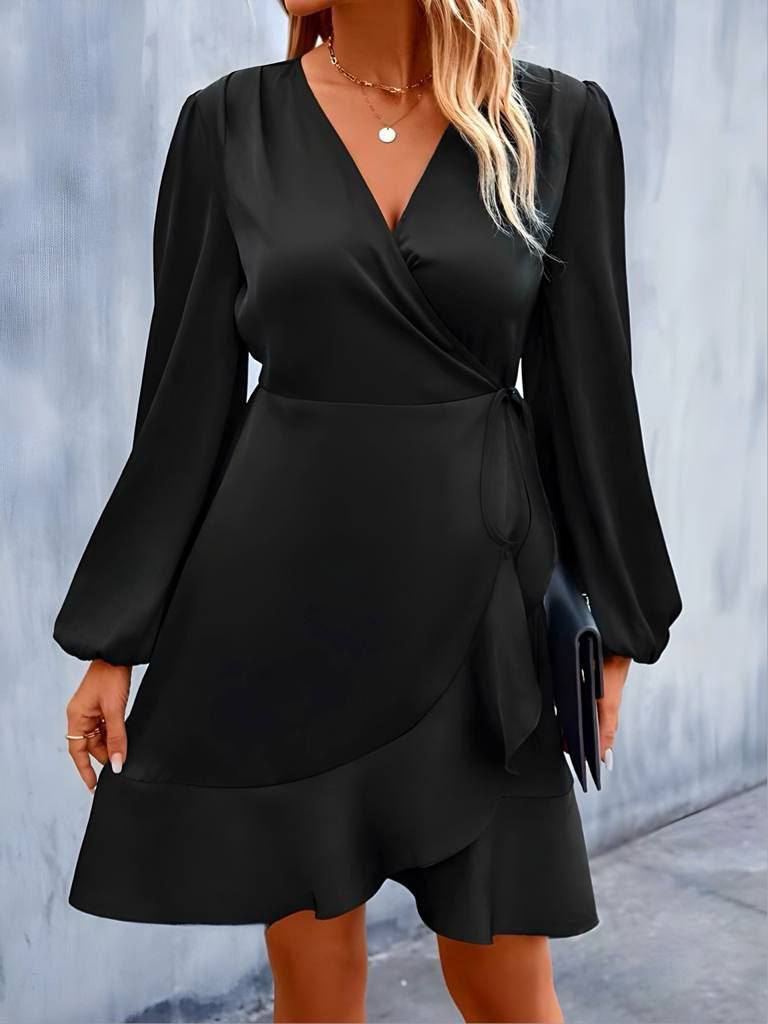 Strahlend ins Frühjahr mit diesem stilvollen Minikleid! Das elegante Design mit langen Ärmeln und einem V-Ausschnitt sorgt dafür, dass du immer modisch und selbstbewusst auftrittst. Egal, ob du es mit hohen Schuhen für einen eleganten Look oder leger mit Stiefeln kombinierst, dieses Kleid ist der perfekte Begleiter für die Frühlingssaison.