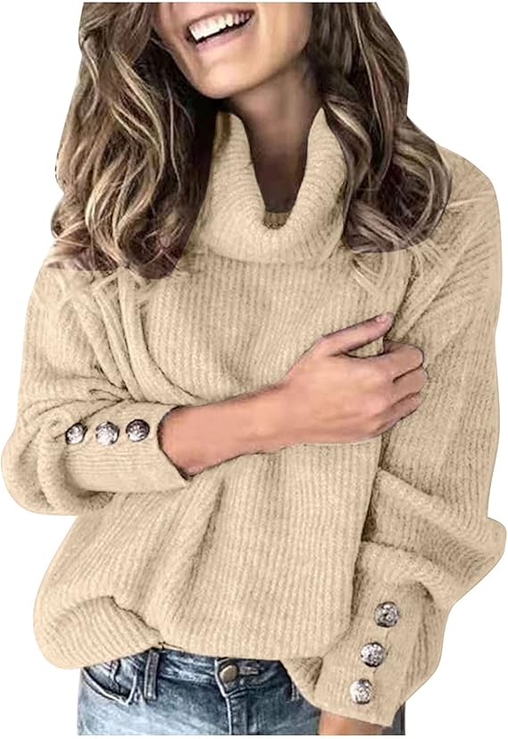 Dieser lässige Rollkragenpullover für Damen kombiniert zeitloses Design mit feinen Details. Die Knopfmanschetten verleihen dem schlichten Stil eine besondere Note und machen ihn zu einem vielseitigen Kleidungsstück. Ob für entspannte Tage zu Hause oder für Treffen in der Stadt – er lässt sich mühelos in verschiedene Outfits integrieren.