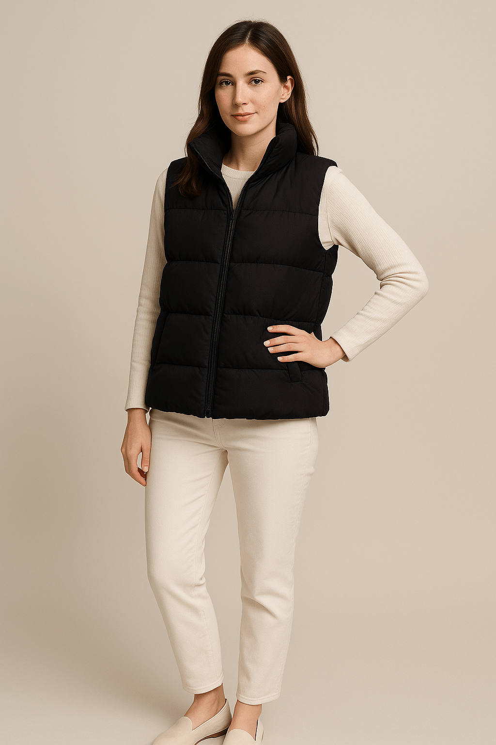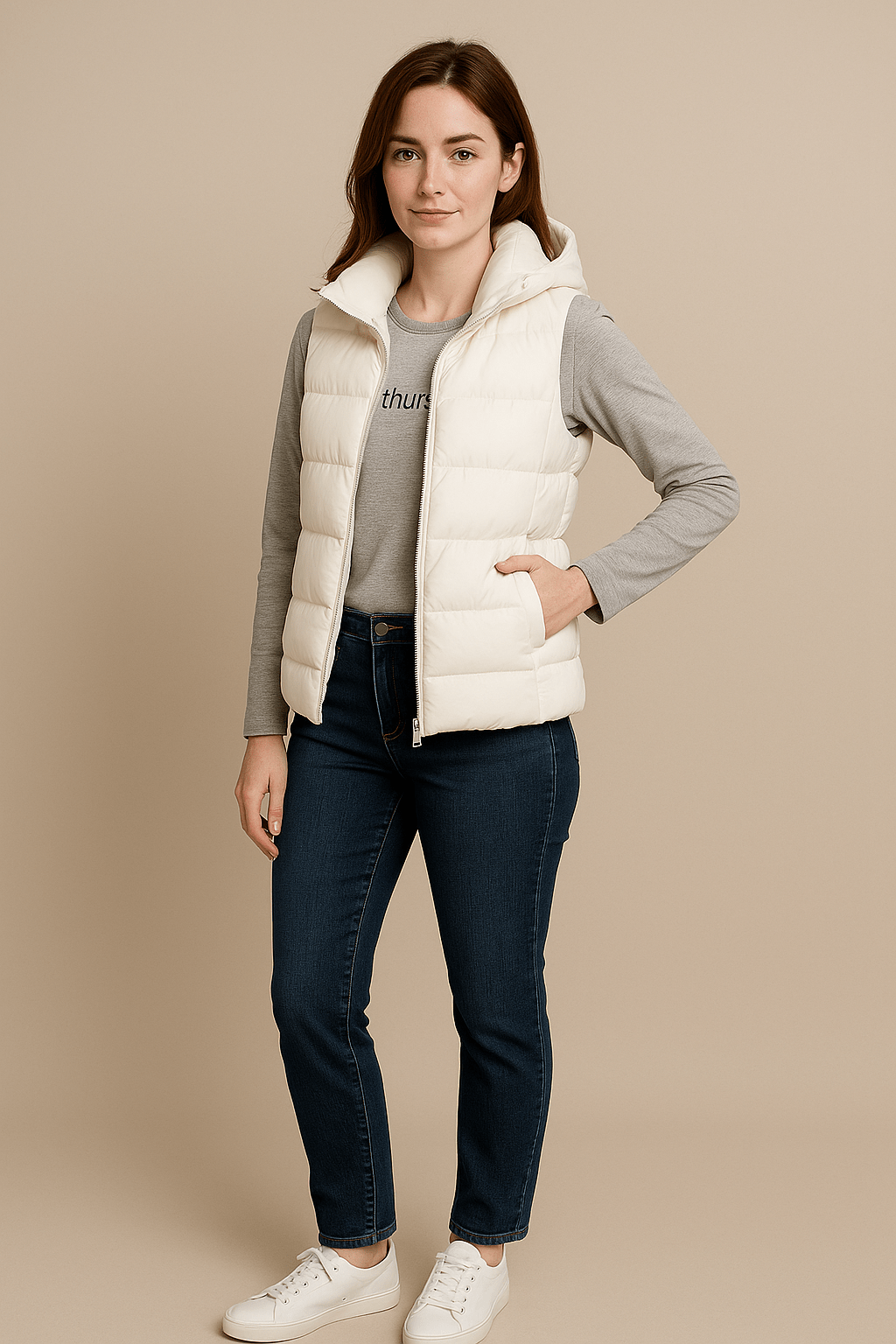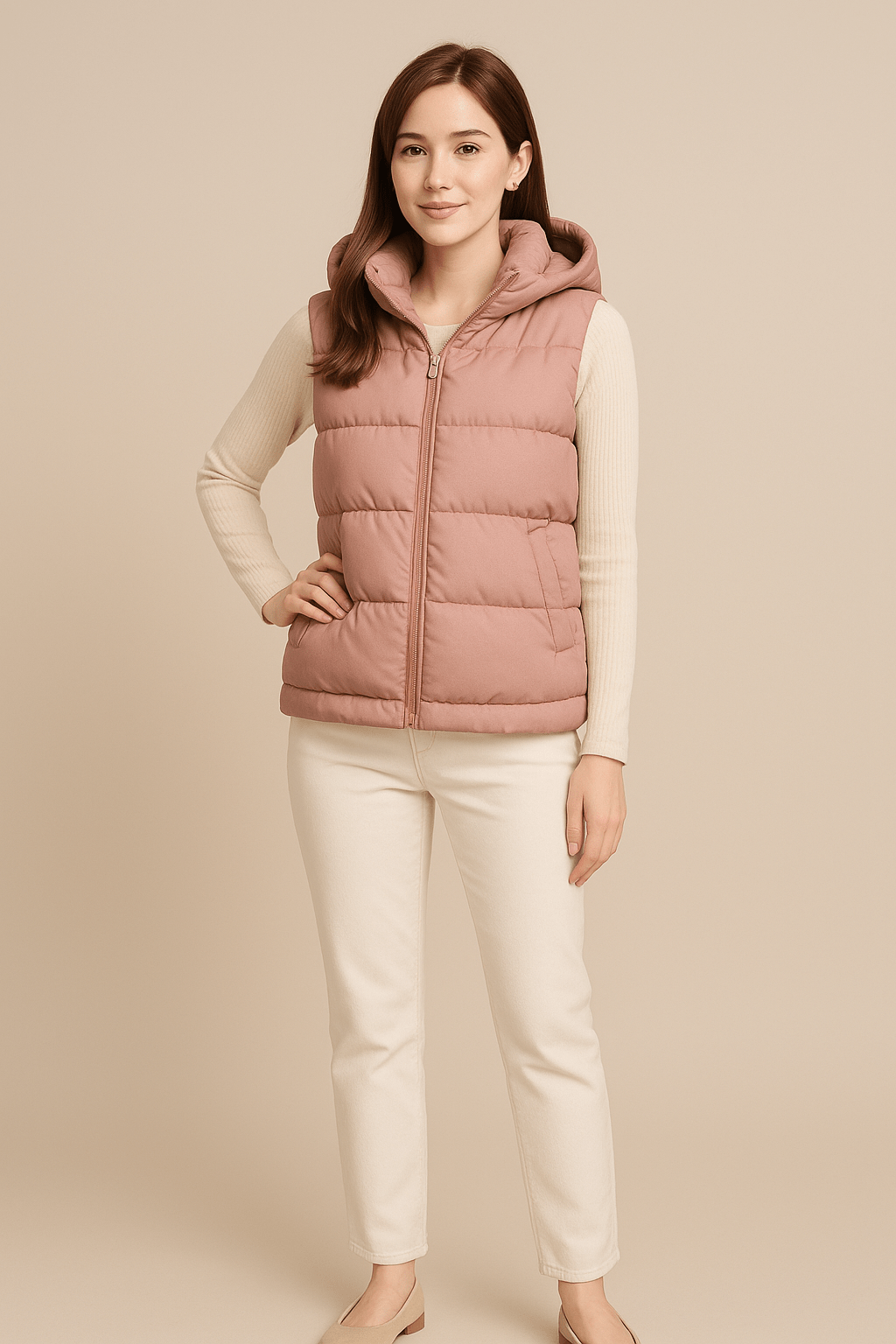 - Design: Ärmellose Steppweste mit abnehmbarer Kapuze