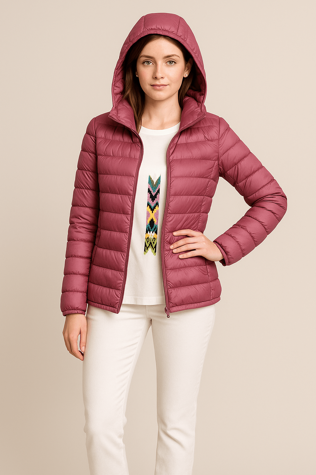 Die Daunenjacke Michelle vereint Komfort, Funktionalität und zeitlose Eleganz. Das leichte, gesteppte Modell schmeichelt der Figur, die kuschelige Kapuze sorgt für die perfekte Balance zwischen Funktion und Stil. Ideal für kalte Tage: Michelle hält warm, ohne aufzutragen, und ist damit die perfekte Jacke für jeden Anlass.