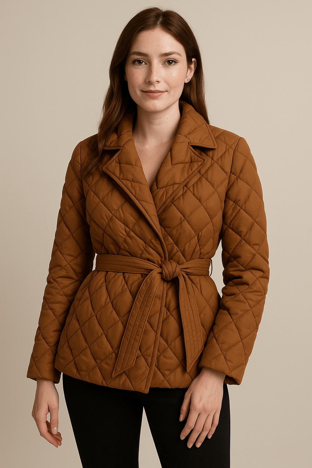 Mit der Selina Steppjacke bleiben Sie warm und sehen dabei mühelos stilvoll aus. Die Jacke mit ihrer strukturierten Passform und dem rautenförmigen Steppmuster bietet Komfort und Eleganz zugleich. Der Gürtel in der Taille betont Ihre Figur und sorgt für eine schmeichelhafte Silhouette, während das weiche Steppmaterial an kalten Tagen für wohlige Wärme sorgt. Sie ist perfekt für Freizeit, Spaziergänge im Freien oder Stadtbummel. Selina vereint Eleganz und Funktionalität und bietet Ihnen höchsten Tragekomfort sowie einen stilvollen Touch für Ihre Wintergarderobe.