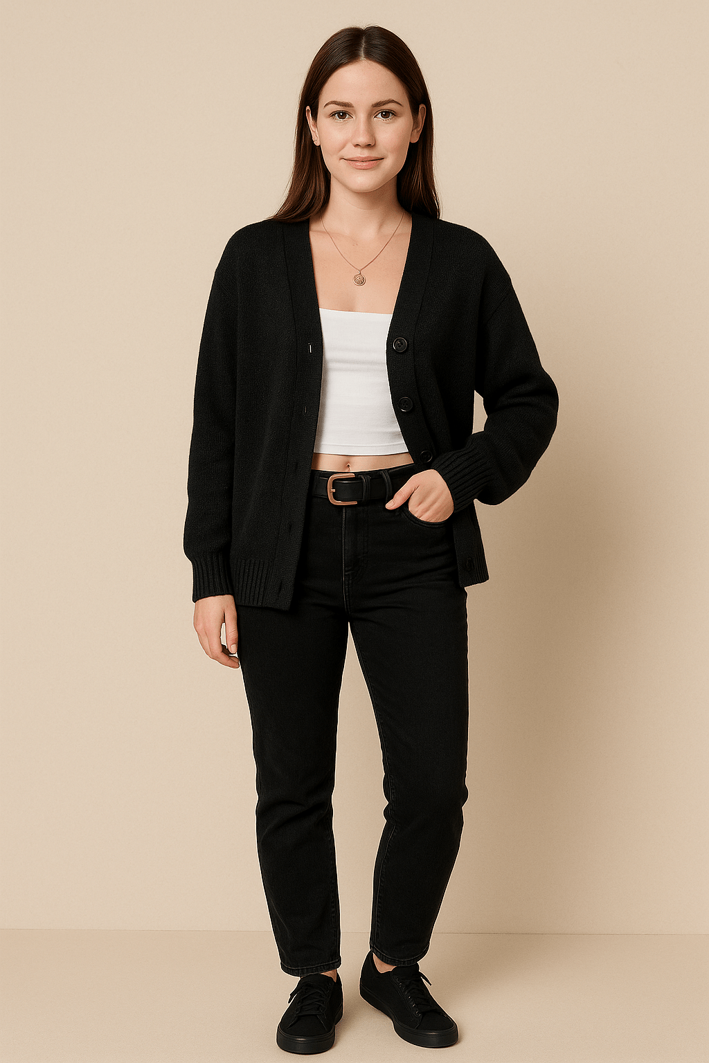 - Stilbezeichnungen: Damenstrickjacke, Strickjacke aus Wollmischgewebe mit Kapuze, ärmellose Strickjacke mit Knöpfen
