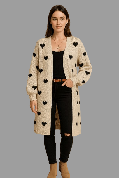 Stephanie | Oversize Strickjacke mit Herzmuster